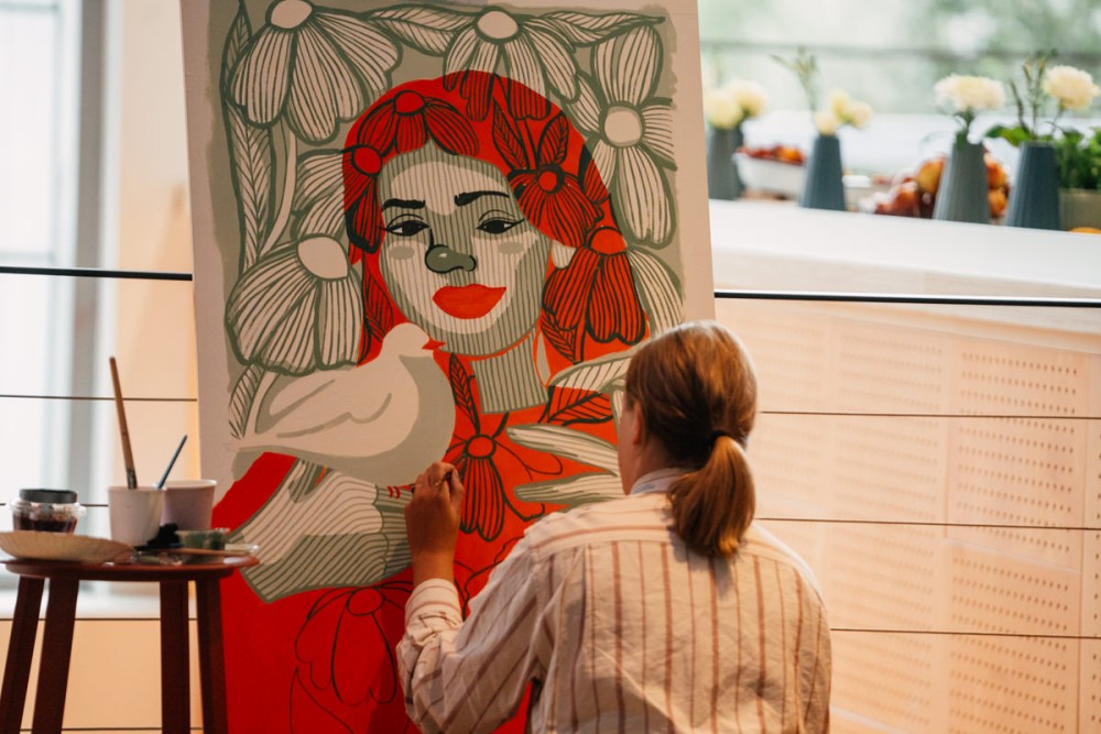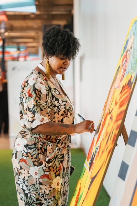 Jeru Nomi is an artist, story teller and art educator from South West London. She uses large scale murals as her canvas, creating narrative driven illustrations. Working primarily with paint, her pieces are a whimsical view on reality, centring around relationships, human behaviour and interactions with the natural environment.